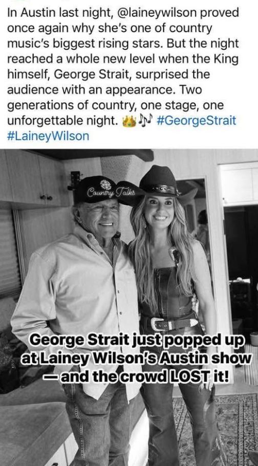 The Austin show wasn’t just a concert — it was a celebration of country music itself. George Strait and Lainey Wilson created a memory that fans will talk about for years to come.